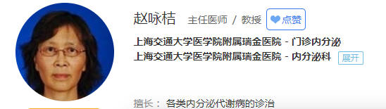 赵咏桔,女,主任医师,教授,博士研究生导师 上海第二医科大学附属瑞金医院老年病科(内分泌专业) 上海医学会内科学会委员 参与编写了《肾上腺疾病诊断与治疗学》、《医学营养学》、《现代免疫学检验与临床实践》等十余部专著